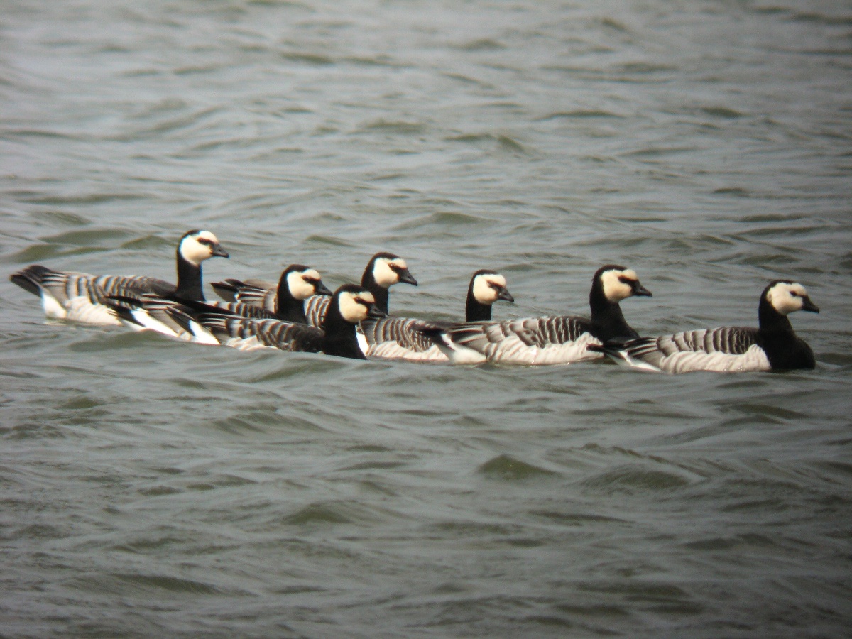 Hejno bernešek bělolících se zastavilo na Hradeckém rybníku v Tovačově 24.4.2011