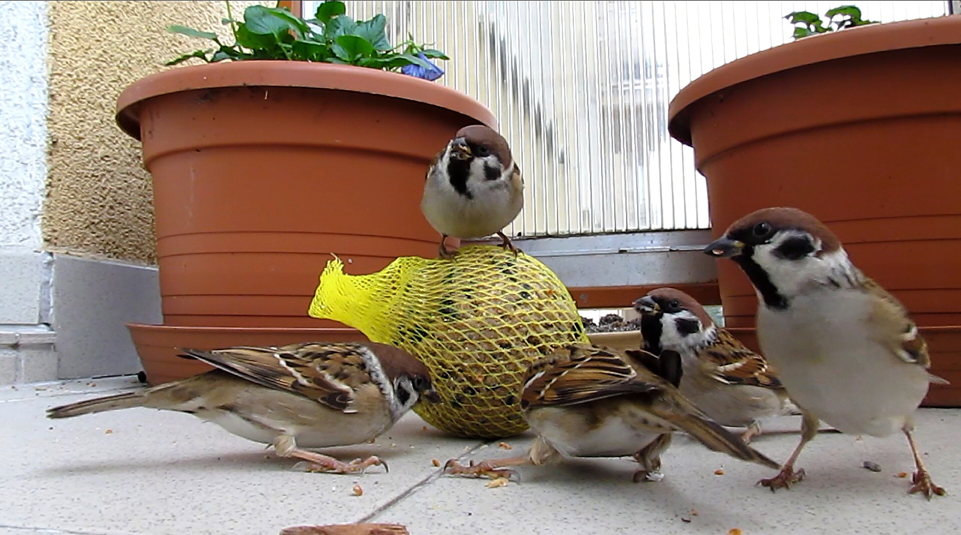 Vrabci polní u lojové koule, Přerov, 16. 11. 2014 video na: http://youtu.be/zk89kJ_lpBo